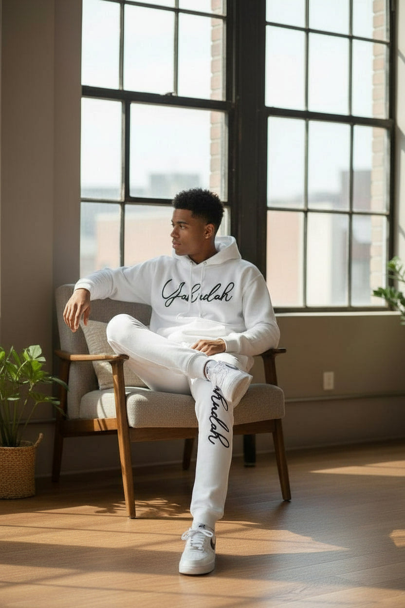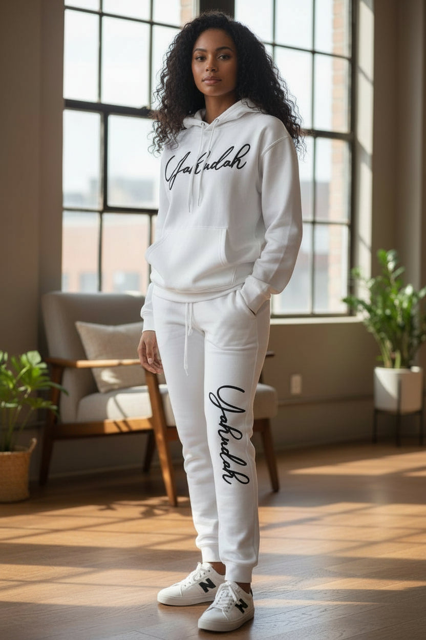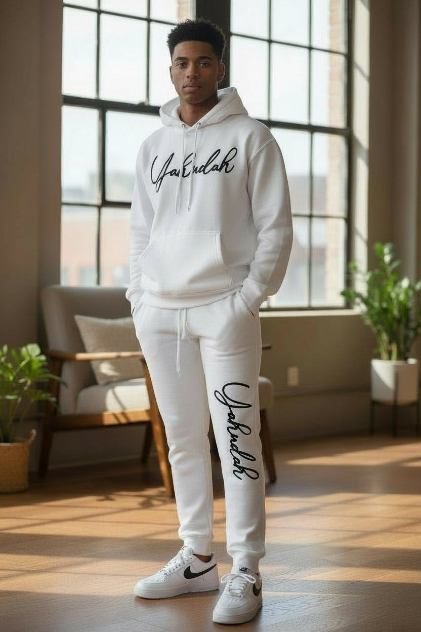 Elevate your everyday style with the Yahudah Signature collection—where timeless meets modern sophistication. This premium piece features our iconic cursive logo rendered in flocked detail, creating a tactile dimension that catches the eye and invites touch. Available in crisp white and black delivers versatile appeal for any wardrobe. The soft, velvety flocked finish adds an upscale feel that sets this apart from ordinary basics. Perfect for those who appreciate quality craftsmanship, the Yahudah Signature set is your go-to for making a refined statement.